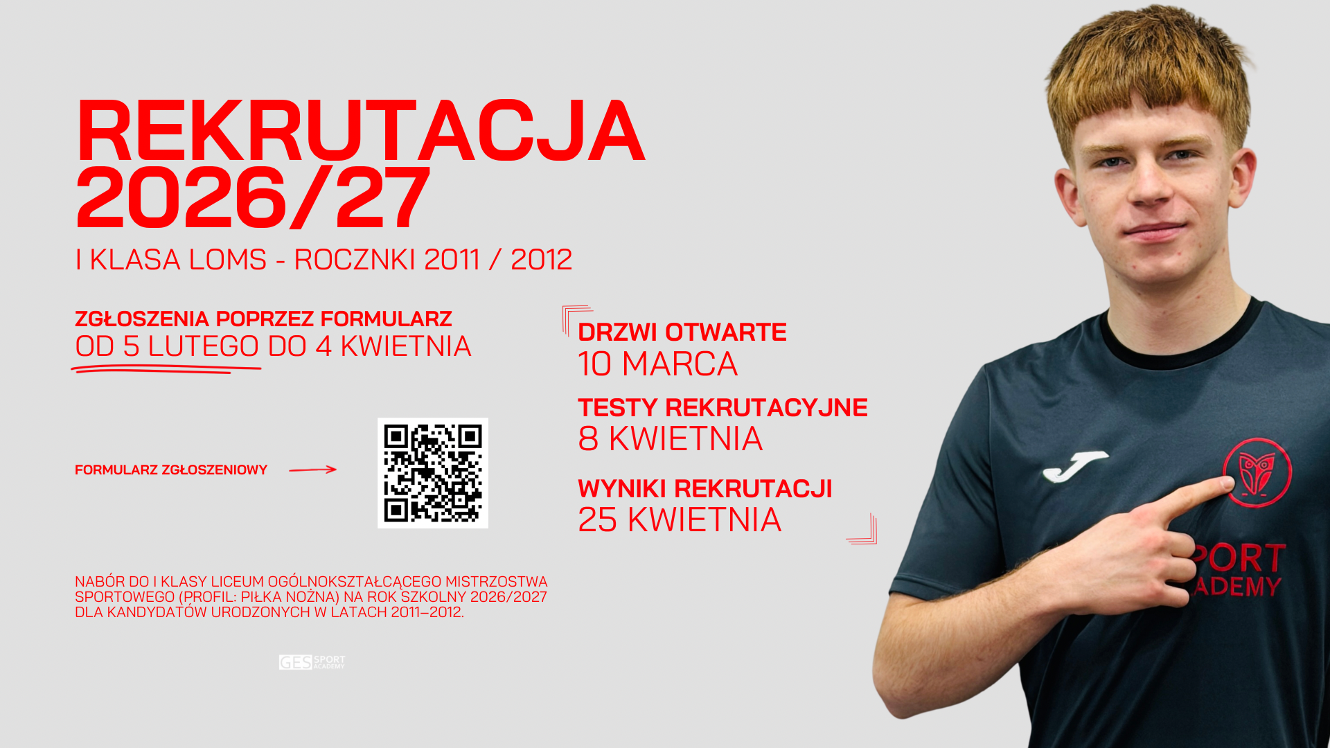 Przyjmujemy chłopców urodzonych w latach 2010 i 2011, którzy obecnie kończą ósmą klasę szkoły podstawowej.